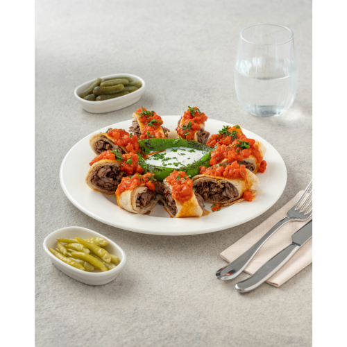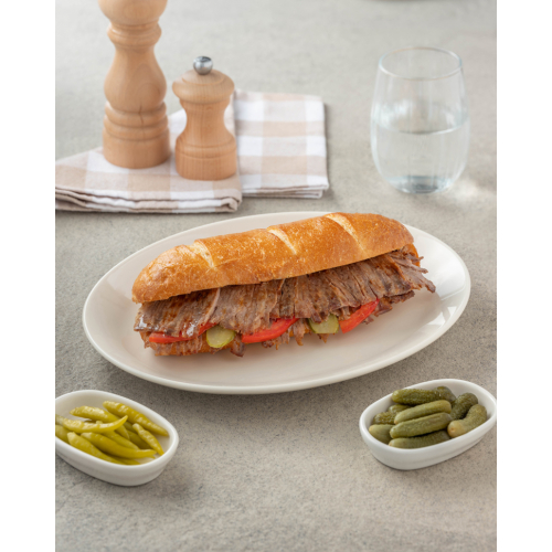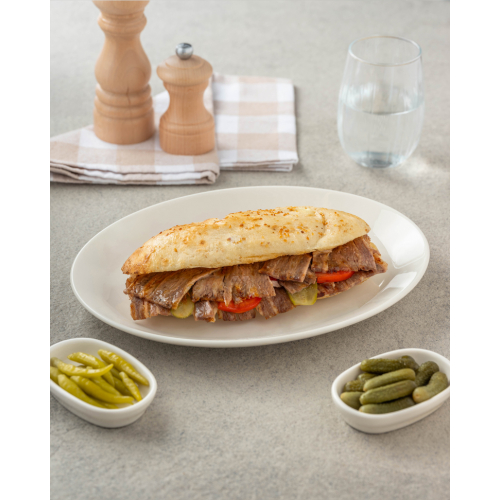 80 gr. Yaprak Et Döner, domates, kornişon turşu.